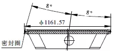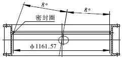 閥體起密封作為的為密封圈,焊接在閥體內(nèi)(圖5)。在2.5m立車上將組焊好的閥體裝夾在閥體密封圈加工工裝上,將立車刀桿旋轉(zhuǎn)8°,根據(jù)圖紙設(shè)計要求,找正后沿圓錐母線方向走刀,車至未焊不銹鋼前的尺寸。然后堆焊不銹鋼,最后將焊好不銹鋼的閥體重新上立車,按上述方法車閥體密封圈至圖紙要求尺寸。最后在立車刀架上裝磨頭,對閥體密封圈進行磨削處理,使其達到圖紙設(shè)計粗糙度要求。